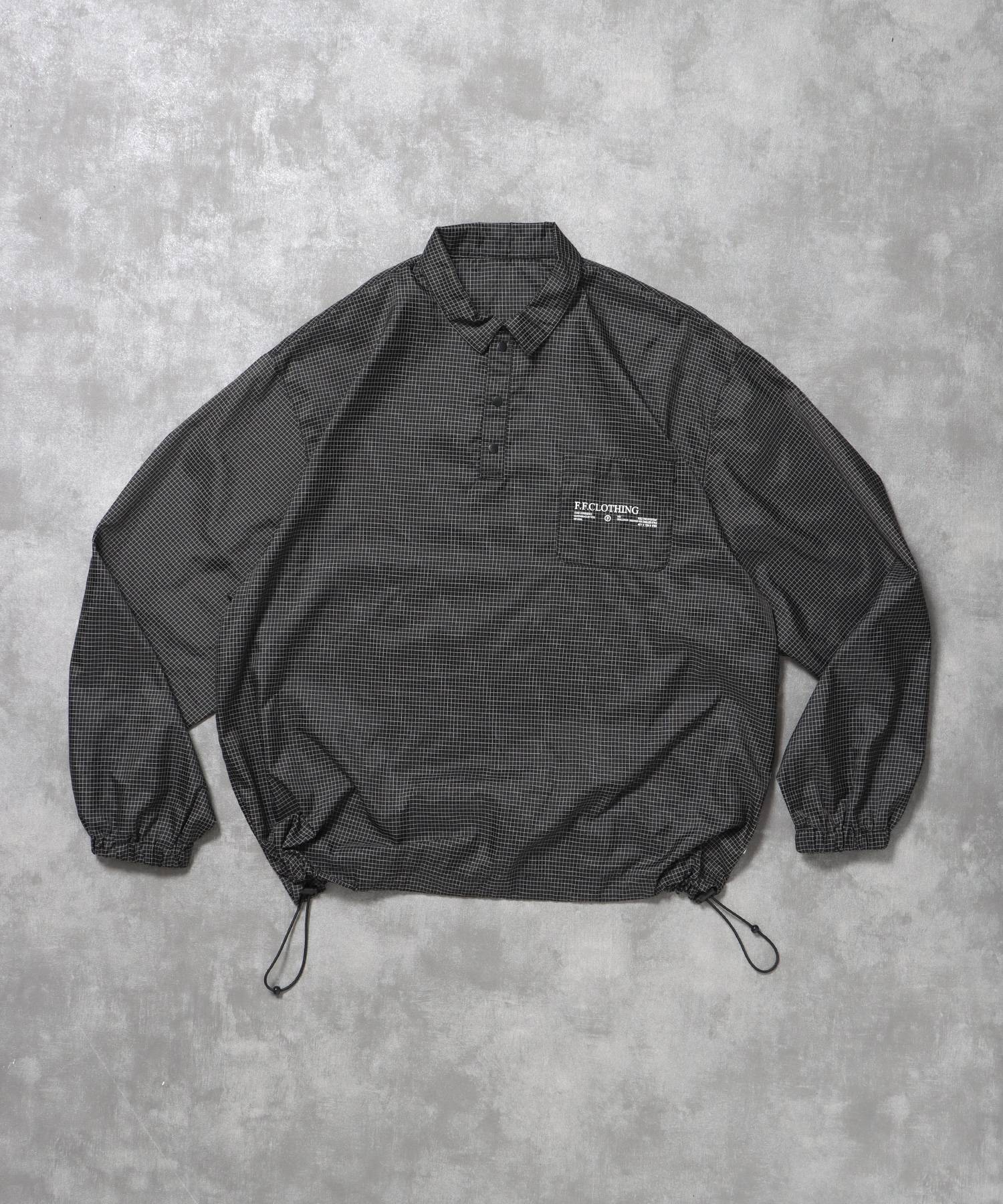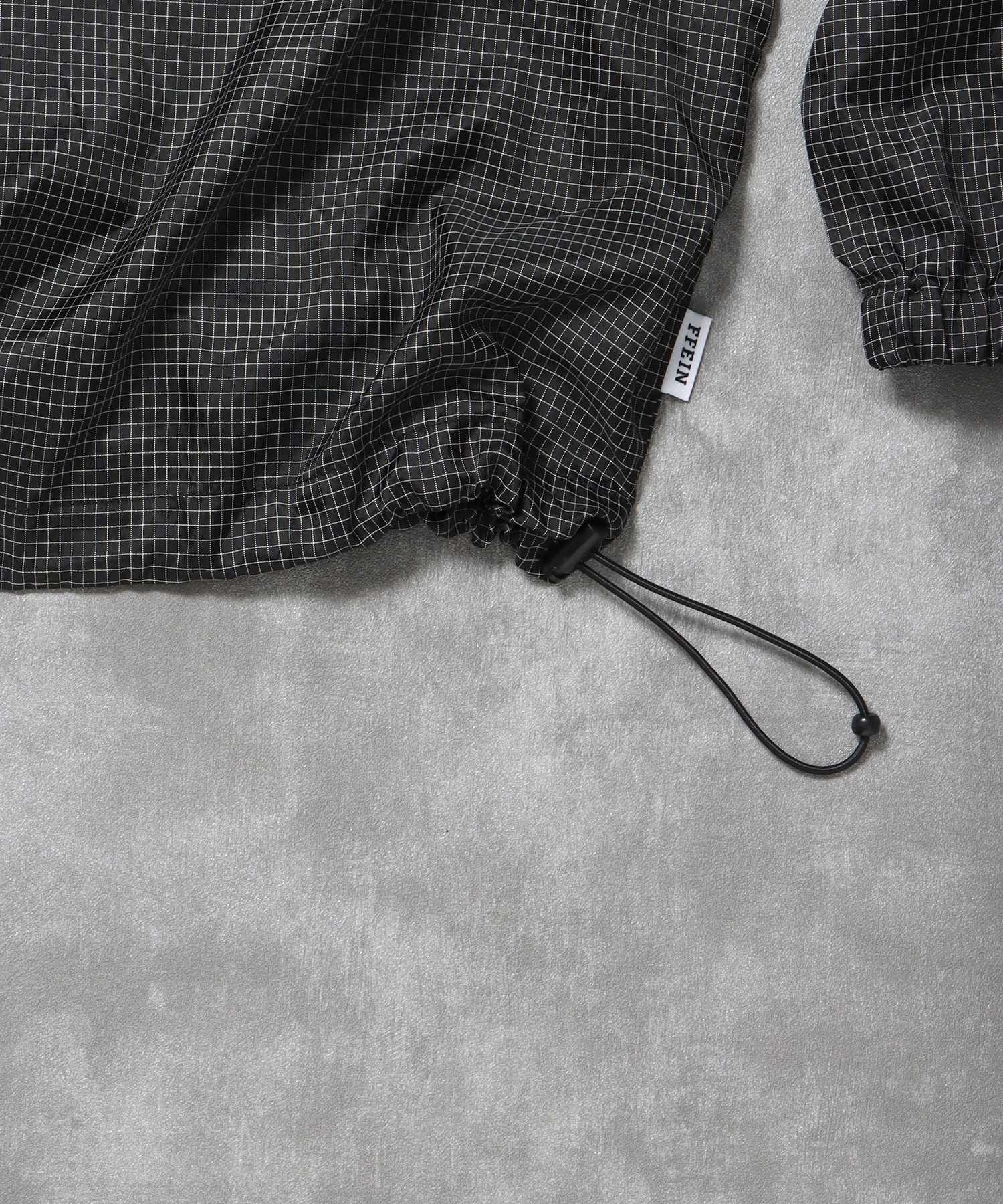 - ナイロンチェックドローコードブルゾン / ポロシャツ ナイロン プリント ドローコード チェック ポケット ブラック