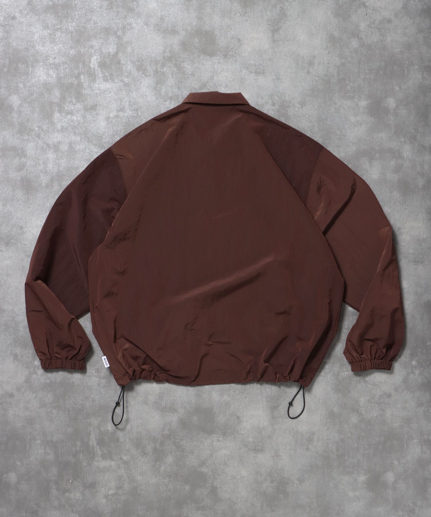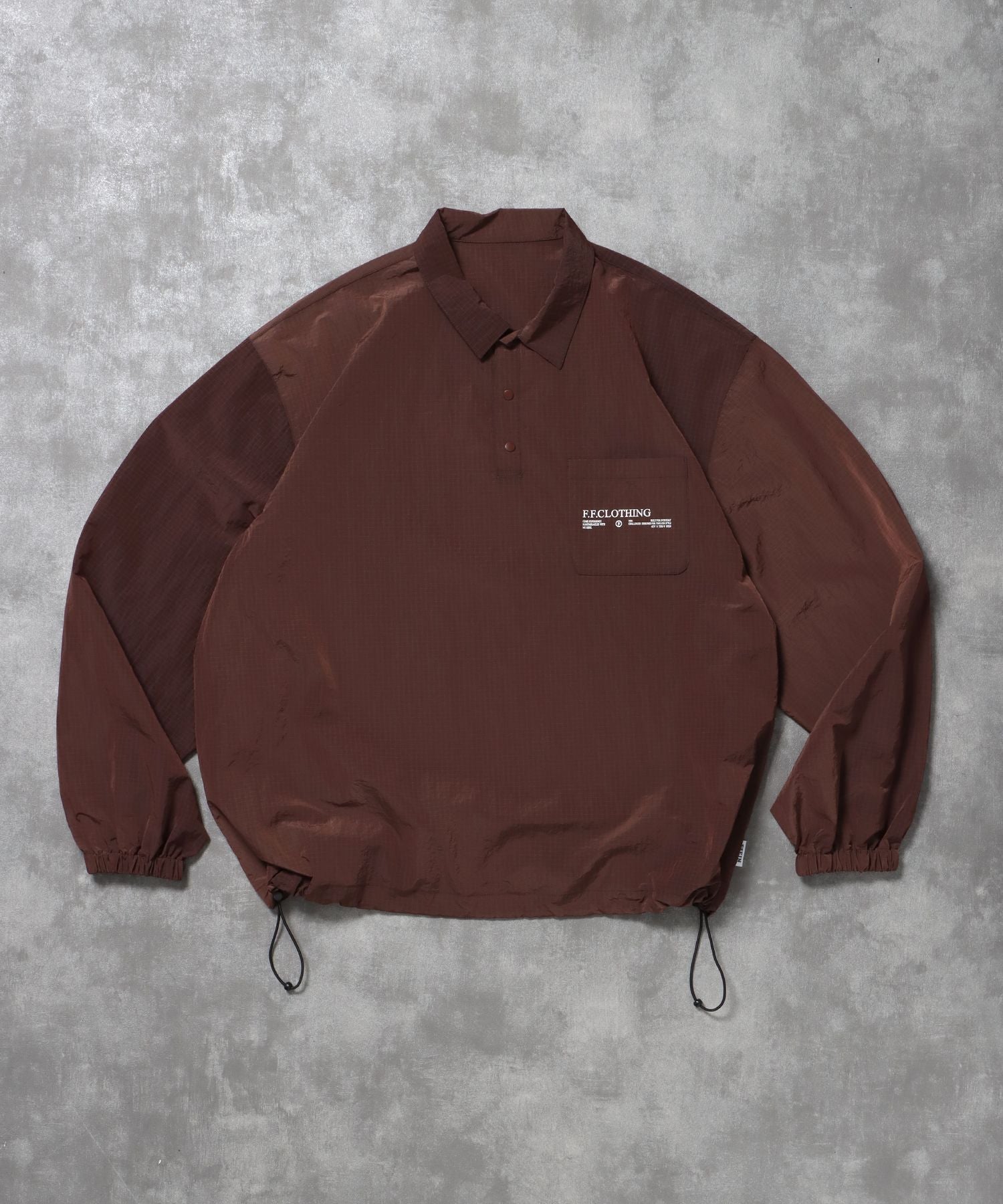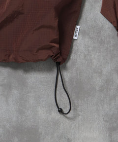 - ナイロンチェックドローコードブルゾン / ポロシャツ ナイロン プリント ドローコード チェック ポケット ブラウン