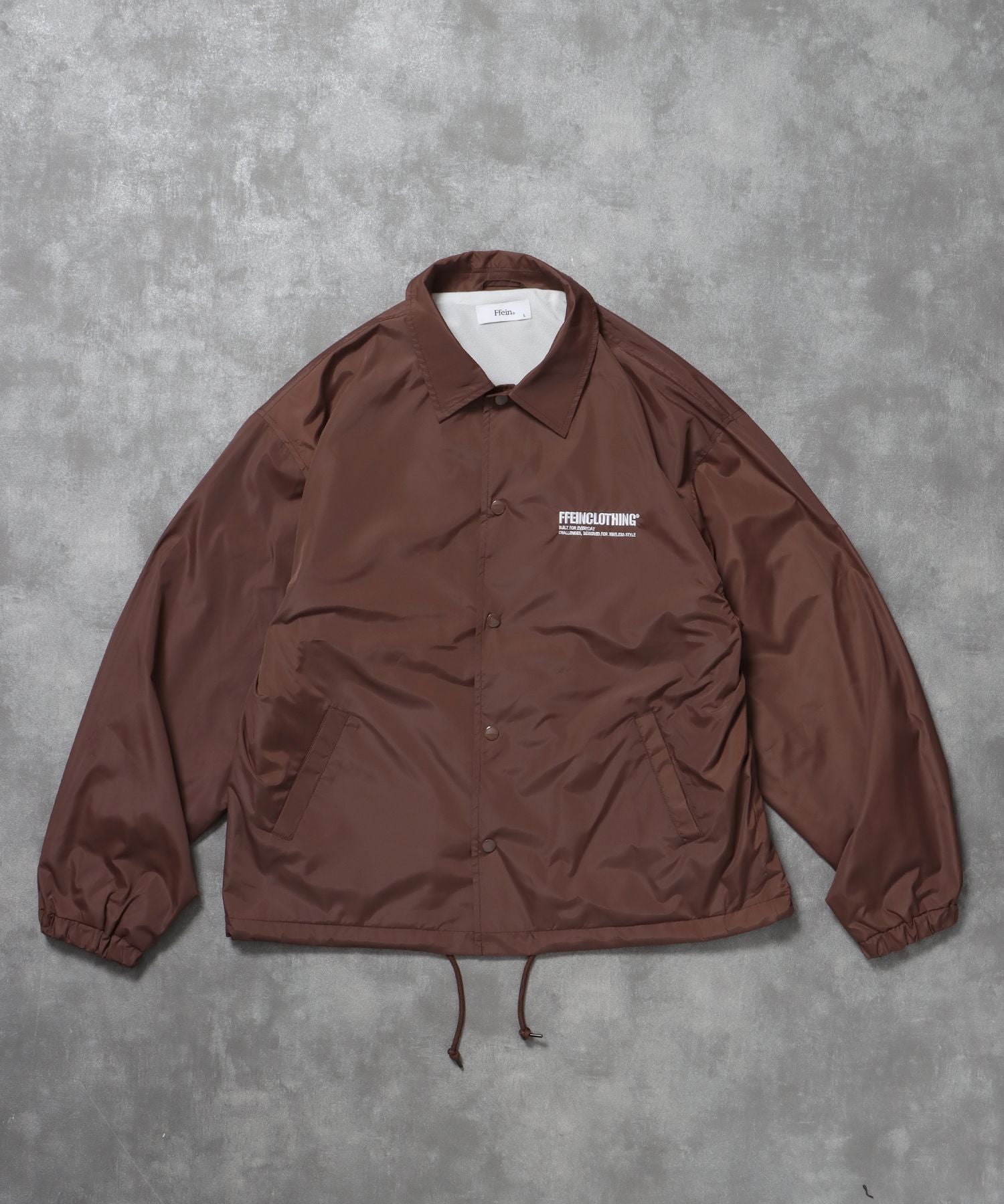 ナイロンロゴコーチジャケット / コーチ ジャケット ロゴ ボタン プリント フリース ブラウン