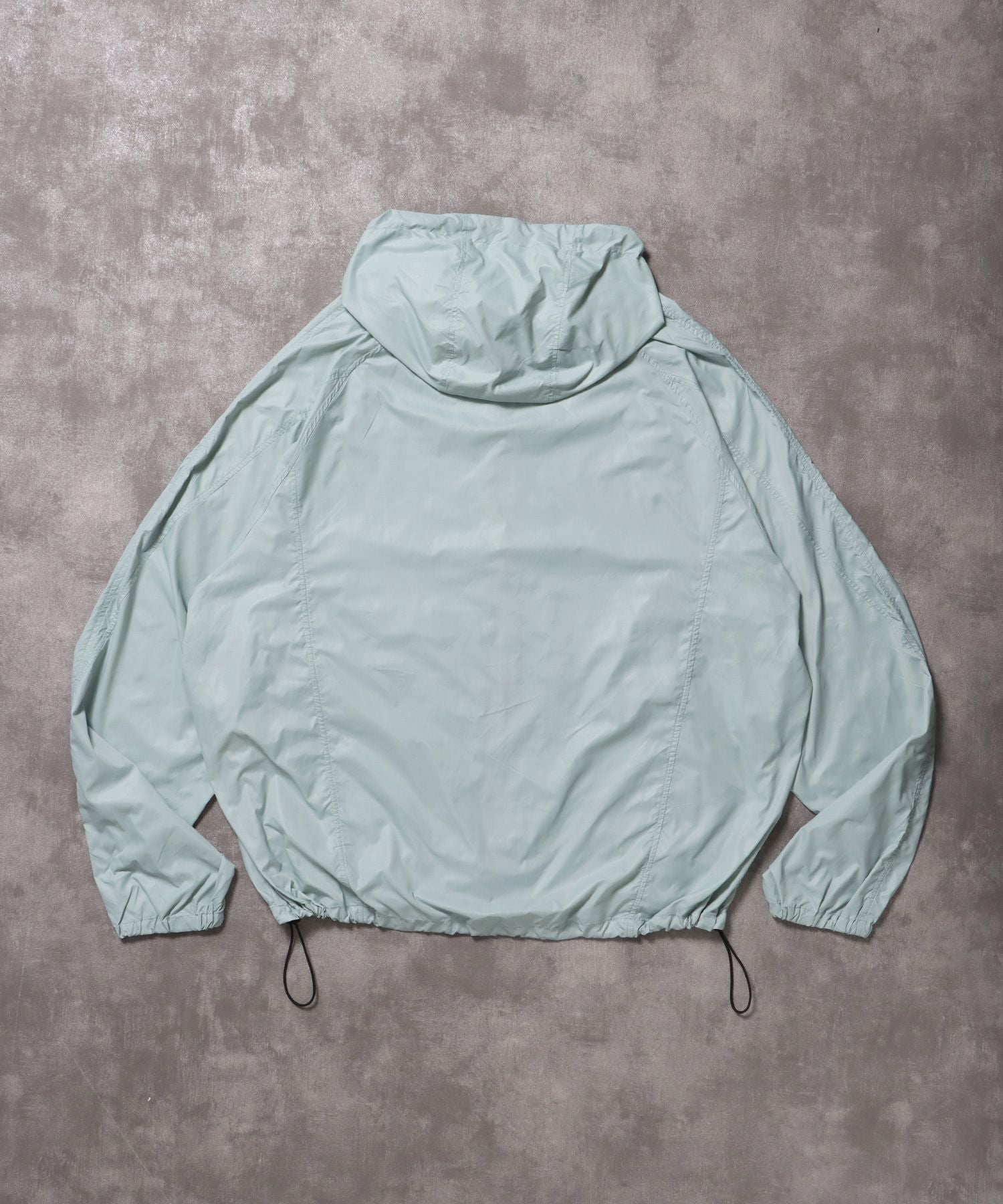 - ワンポイントロゴスポーツナイロンフーディ / ナイロン ジャケット ワンポイント ジップ プリント ドローコード サックスブルー
