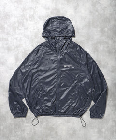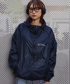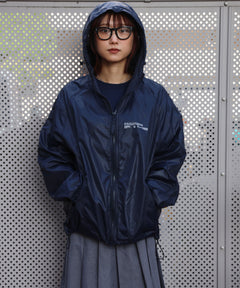 ワンポイントロゴスポーツナイロンフーディ / ナイロン ジャケット ワンポイント ジップ プリント ドローコード ダークネイビー