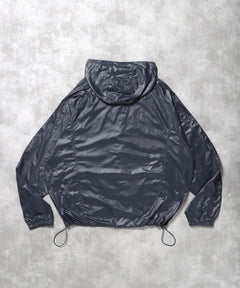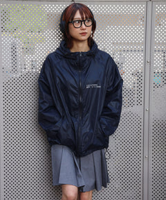 - ワンポイントロゴスポーツナイロンフーディ / ナイロン ジャケット ワンポイント ジップ プリント ドローコード ダークネイビー