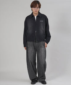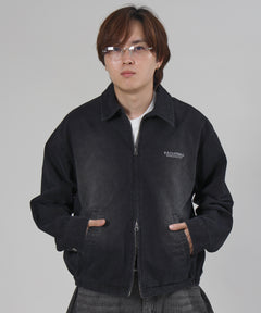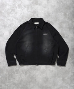 ヴィンテージライクワンポイント刺繡ブルゾン / 加工 ブルゾン ジャケット 刺繍 ダブルジップ ブラック