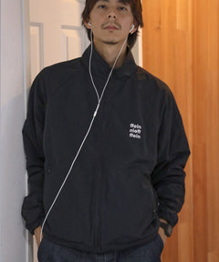 リバーシブルナイロンジャケット / 2WAY リバーシブル ジャケット ナイロン フリース 刺繍 ドローコード ブラック