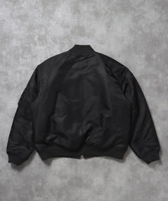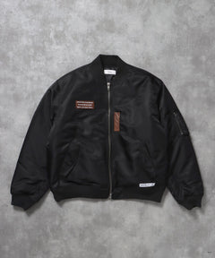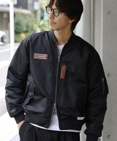 レザーパッチがアクセントの、洗練されたデザインのMA-1ジャケット。