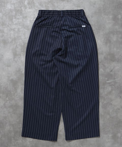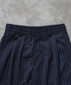 ストライプワイドタックパンツ / スラックス パンツ ドローストリング ストライプ 起毛 タック ネイビー