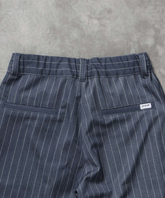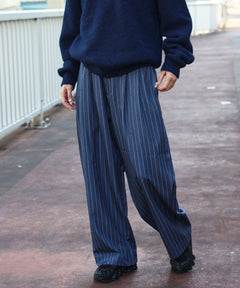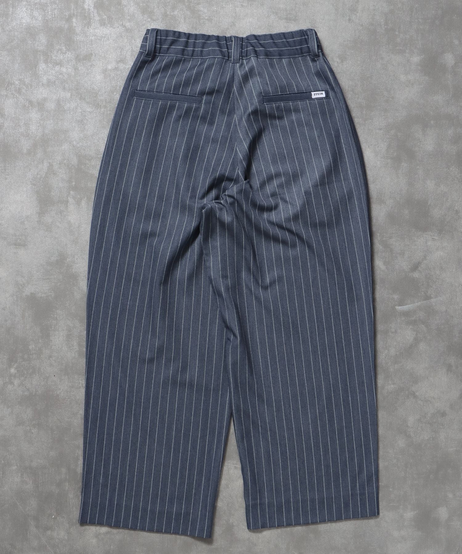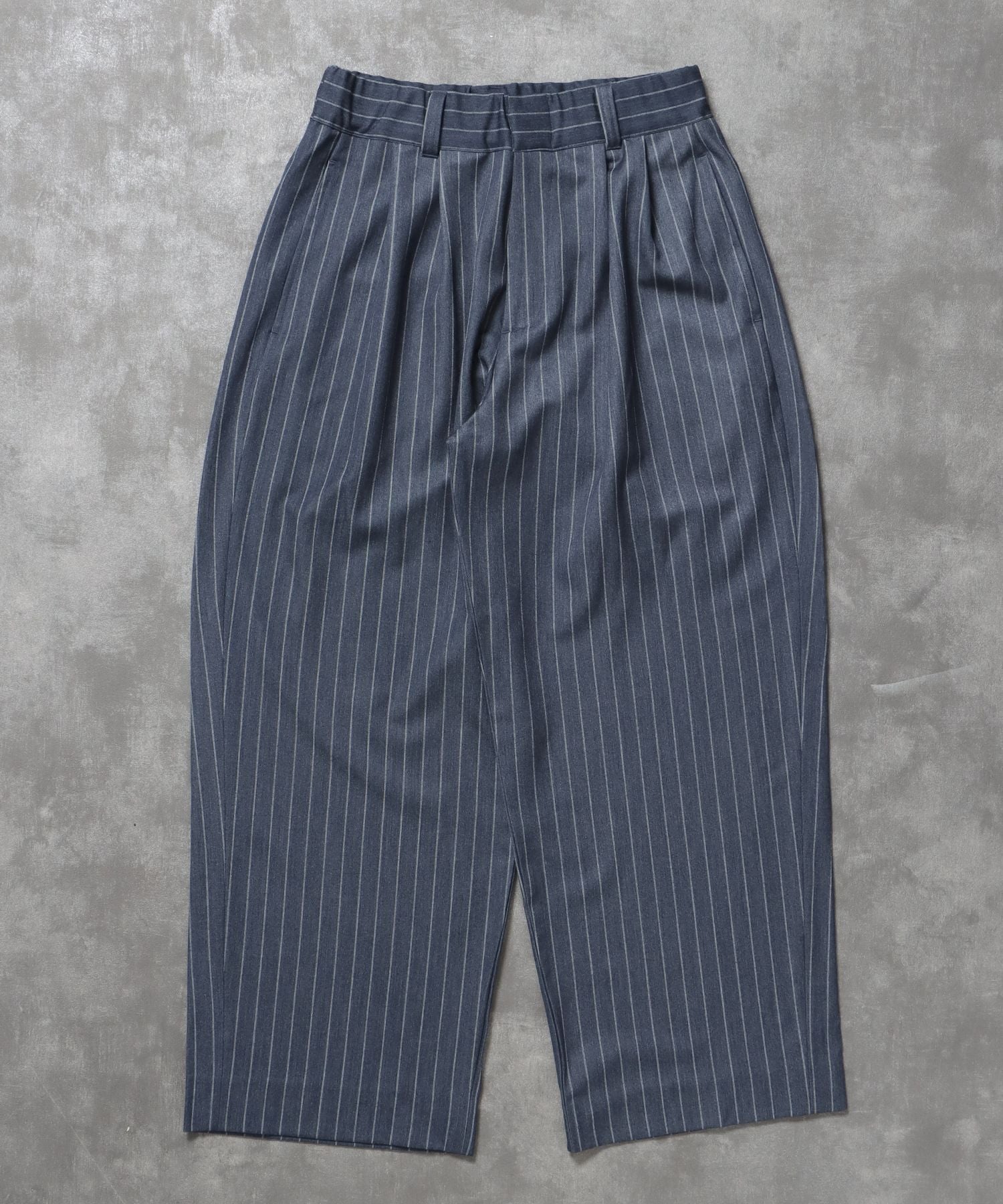 ストライプワイドタックパンツ / スラックス パンツ ドローストリング ストライプ 起毛 タック ブルーグレー