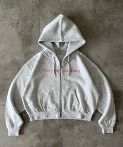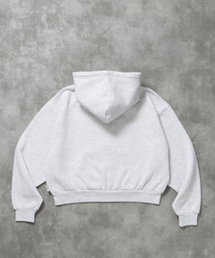 - センター3D刺繍立体フードショート丈ZIPパーカー / レディース パーカー 裏起毛 ヘビーウエイト フーディ ダブルジップ 【短丈】 アッシュグレー