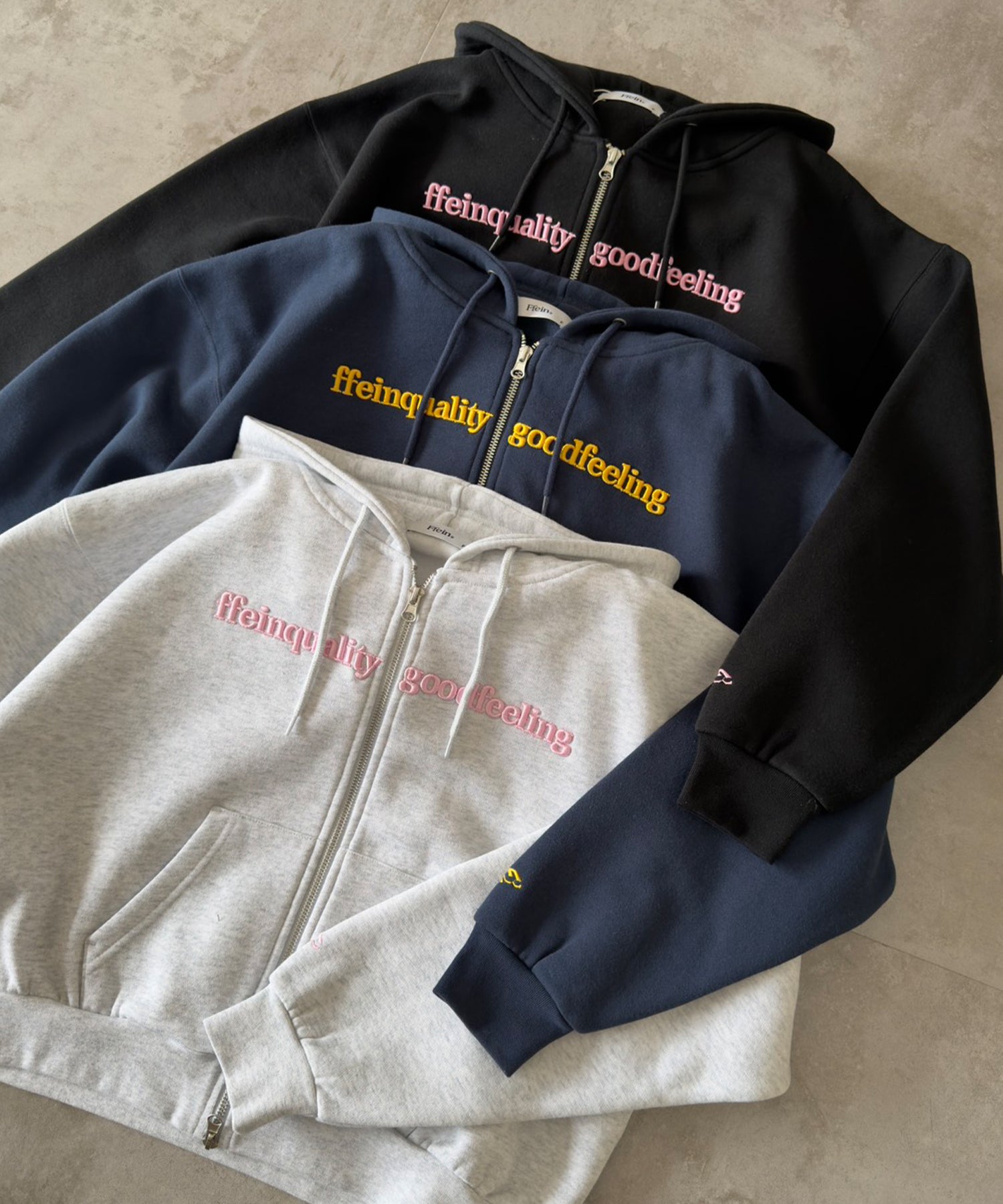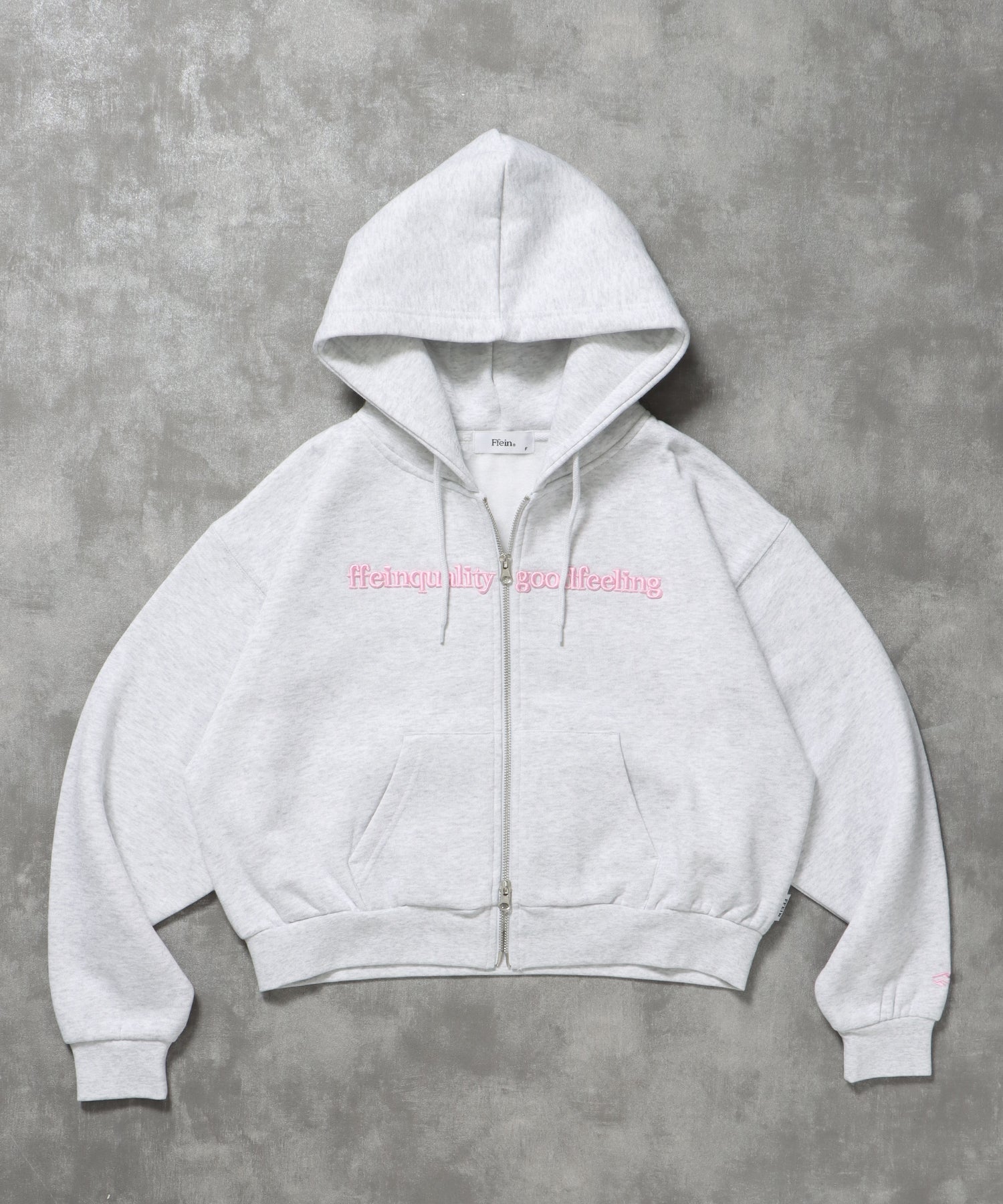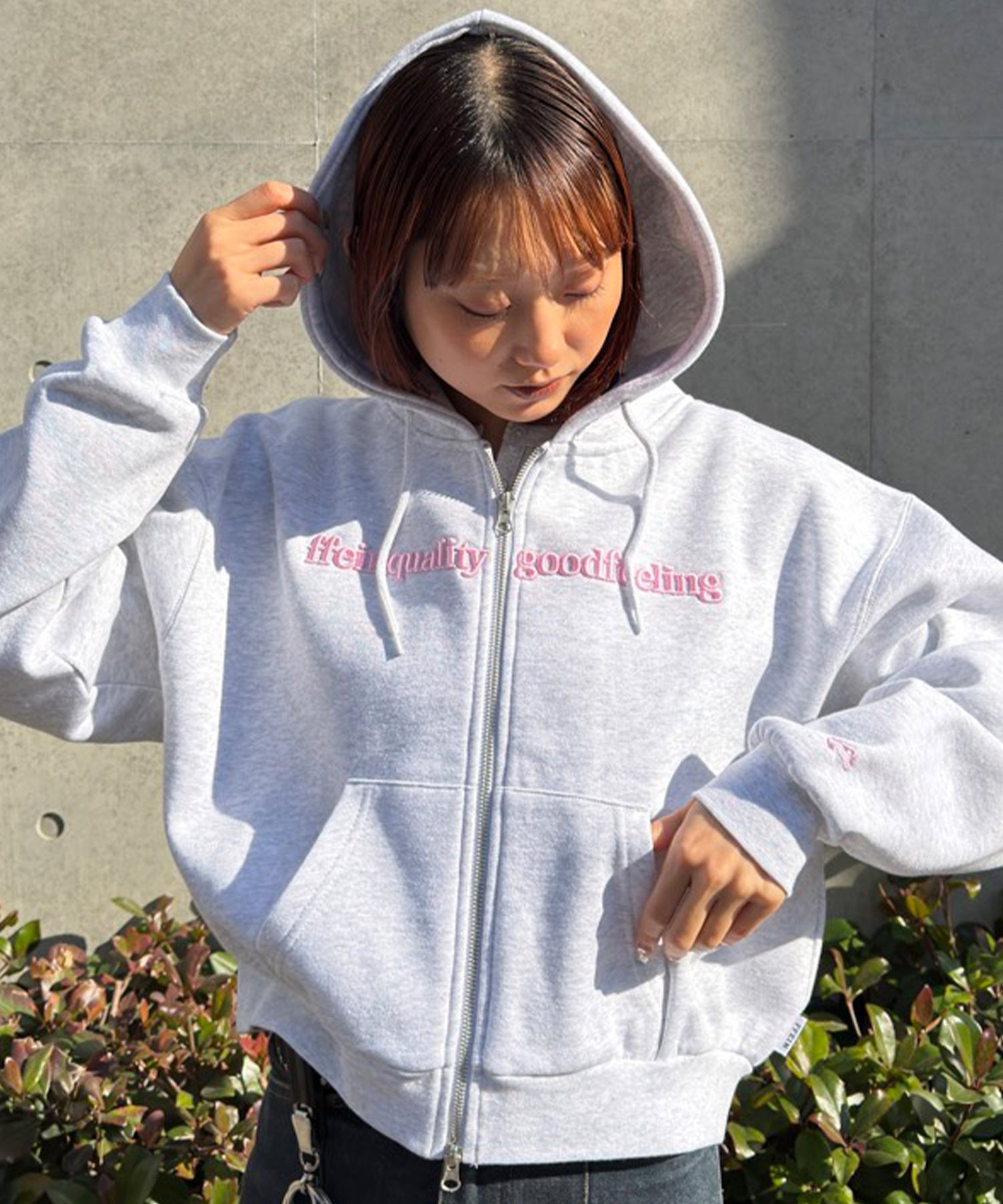 大人気のセンターロゴ刺繍の裏起毛ジップパーカーがレディースサイズにサイジングされた短丈のジップパーカーになって新登場!