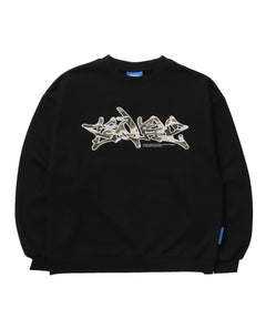- CAMO APPLIQUE C/N SWEAT / カモ柄 ワッペン スウェット クルーネック 裏起毛 ブラック