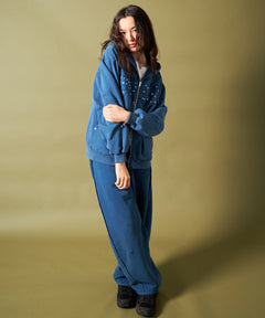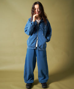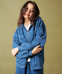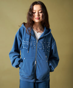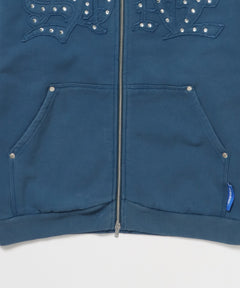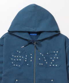 APPLIQUE STONE FADE ZIP P/K / ラインストーン ジップパーカー ダブルジップ 裏起毛 加工 【セットアップ着用可】 ブルー