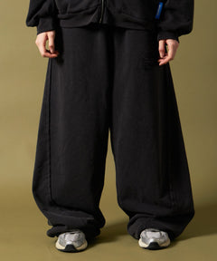 WASHED CURVE SWEAT PANTS / カーブ スウェットパンツ 加工 裏起毛 【セットアップ着用可】 ブラック