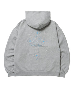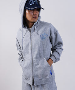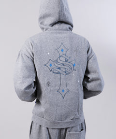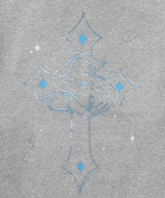 CROSS RHINE STONE ZIP P/K / パーカー ジップパーカー ラインストーン クロスデザイン 裏起毛 ダブルジップ 短丈 【セットアップ】 グレー