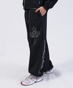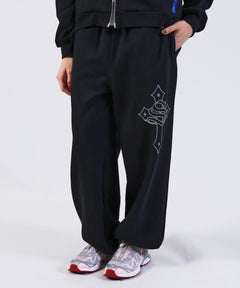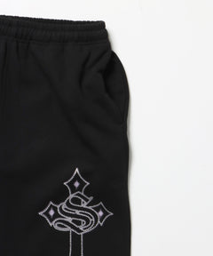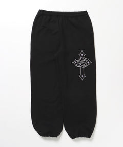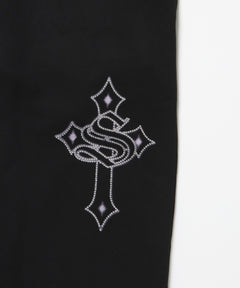 CROSS RHINE STONE SWEAT PANTS / ラインストーン クロス スウェットパンツ ドローコード 裏起毛 【セットアップ】 ブラック