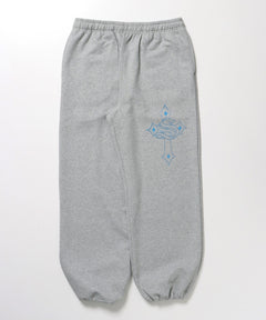 - CROSS RHINE STONE SWEAT PANTS / ラインストーン クロス スウェットパンツ ドローコード 裏起毛 【セットアップ】 グレー