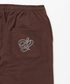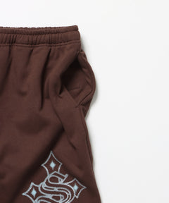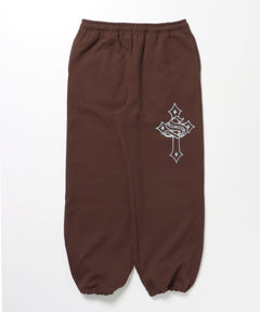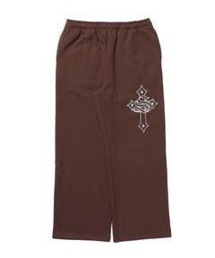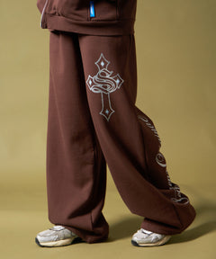CROSS RHINE STONE SWEAT PANTS / ラインストーン クロス スウェットパンツ ドローコード 裏起毛 【セットアップ】 モカ