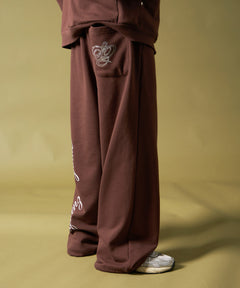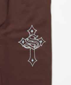 - CROSS RHINE STONE SWEAT PANTS / ラインストーン クロス スウェットパンツ ドローコード 裏起毛 【セットアップ】 モカ