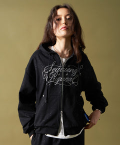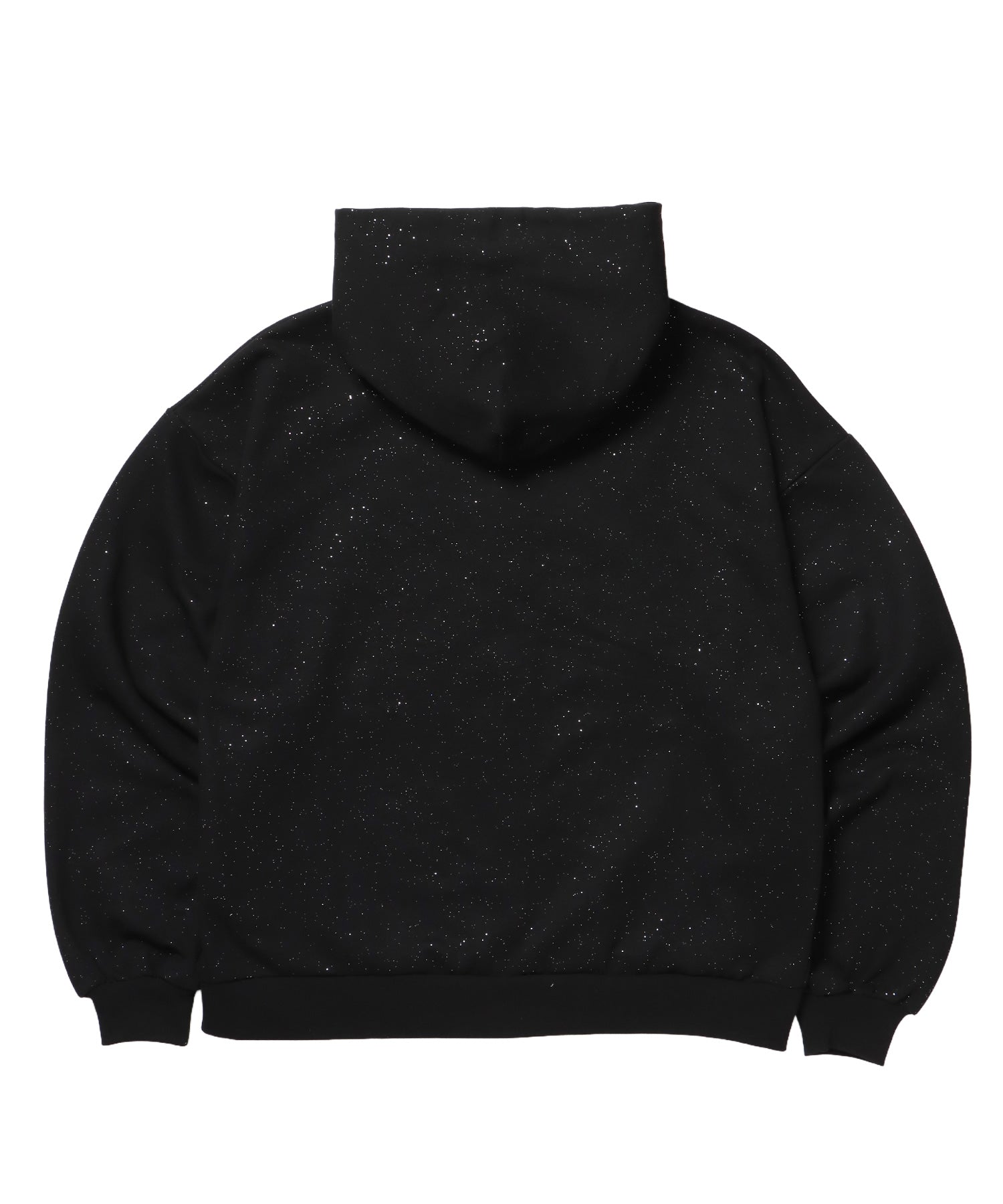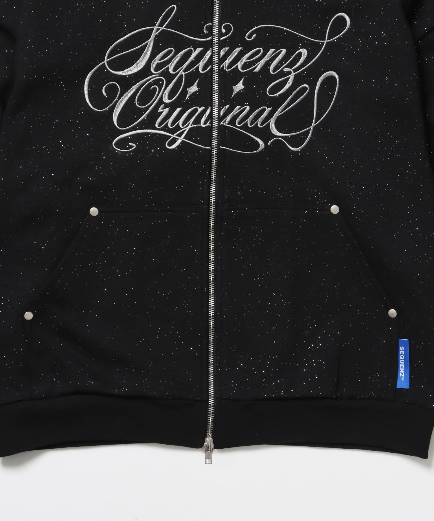 - SQNZ LOGO GLITTER ZIP P/K / グリッター ジップパーカー ラメプリント ダブルジップ 裏起毛 【セットアップ着用可】 ブラック