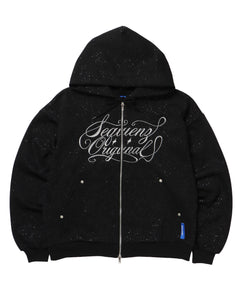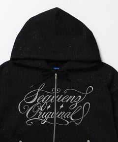 - 《一部予約商品》SQNZ LOGO GLITTER ZIP P/K / グリッター ジップパーカー ラメプリント ダブルジップ 裏起毛 【セットアップ着用可】 ブラック