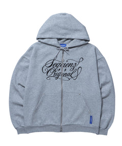 SQNZ LOGO GLITTER ZIP P/K / グリッター ジップパーカー ラメプリント ダブルジップ 裏起毛 【セットアップ着用可】 グレー