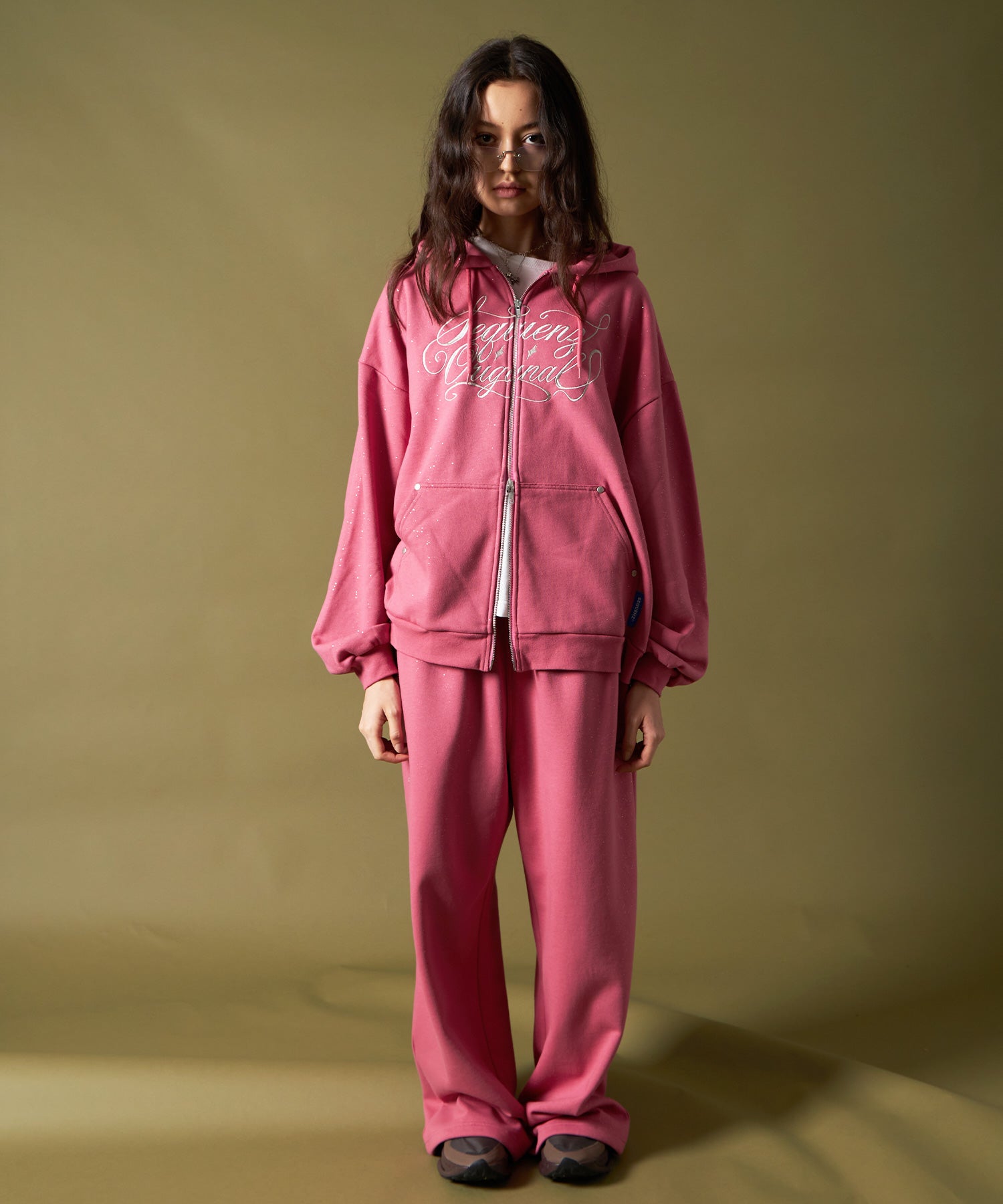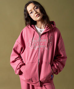 - SQNZ LOGO GLITTER ZIP P/K / グリッター ジップパーカー ラメプリント ダブルジップ 裏起毛 【セットアップ着用可】 ピンク