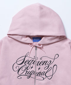 - SQNZ LOGO GLITTER ZIP P/K / グリッター ジップパーカー ラメプリント ダブルジップ 裏起毛 【セットアップ着用可】 ライトピンク