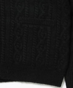 - FUR CABLE KNIT ZIP-UP HOODIE / ニット ジップパーカー 刺繍 ファー ケーブルニット ブラック