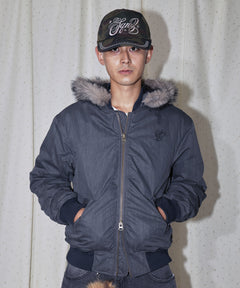 FUR SQNZ BOMBER JACKET / オーバーサイズ ジャケット アウター ブルゾン 中綿 加工 ジップ ブラック