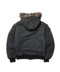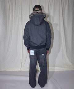 - FUR SQNZ BOMBER JACKET / オーバーサイズ ジャケット アウター ブルゾン 中綿 加工 ジップ ブラック