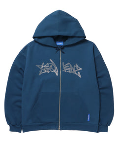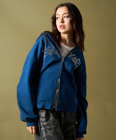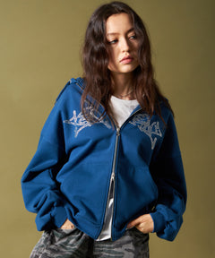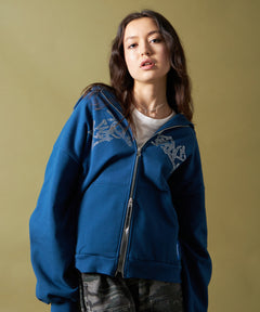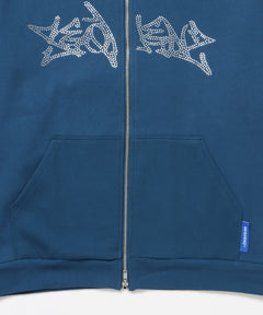RHINE STONE ZIP P/K / ラインストーン ジップパーカー 裏起毛 フーディ スウェット ブルー