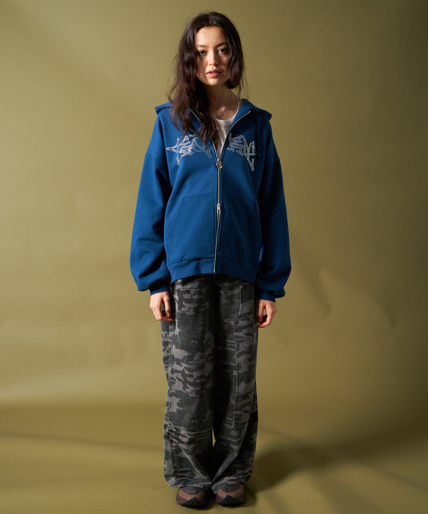 - RHINE STONE ZIP P/K / ラインストーン ジップパーカー 裏起毛 フーディ スウェット ブルー