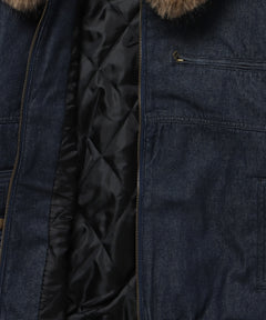 FUR DENIM HOODIE JKT / デニム ジャケット ファー 中綿 ダブルジップ フーディ ネイビー