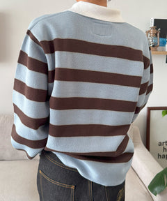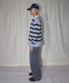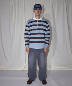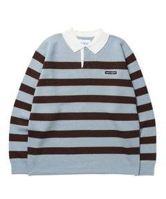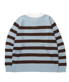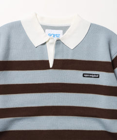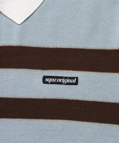 sqnz border knit / ボーダー ニット スキッパー 織ネーム ワンポイント ライトブルー