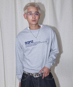 sqnz star studs logo sweat / ワンポイント プリント スウェット クルーネック 裏毛 グレー
