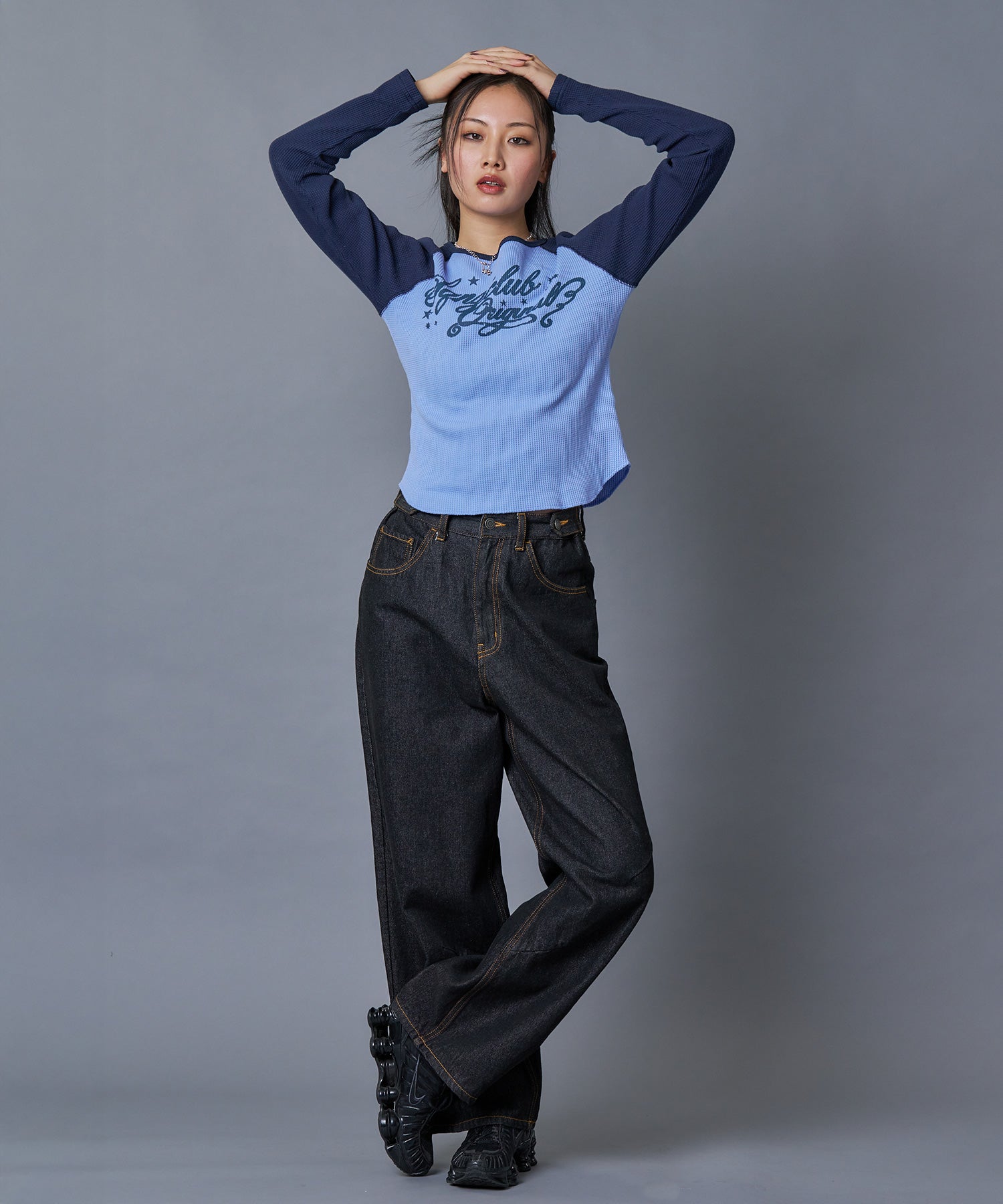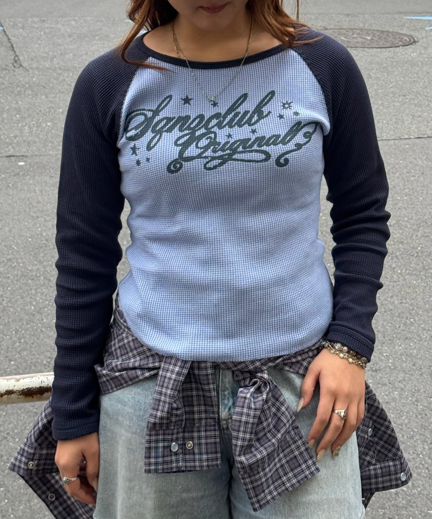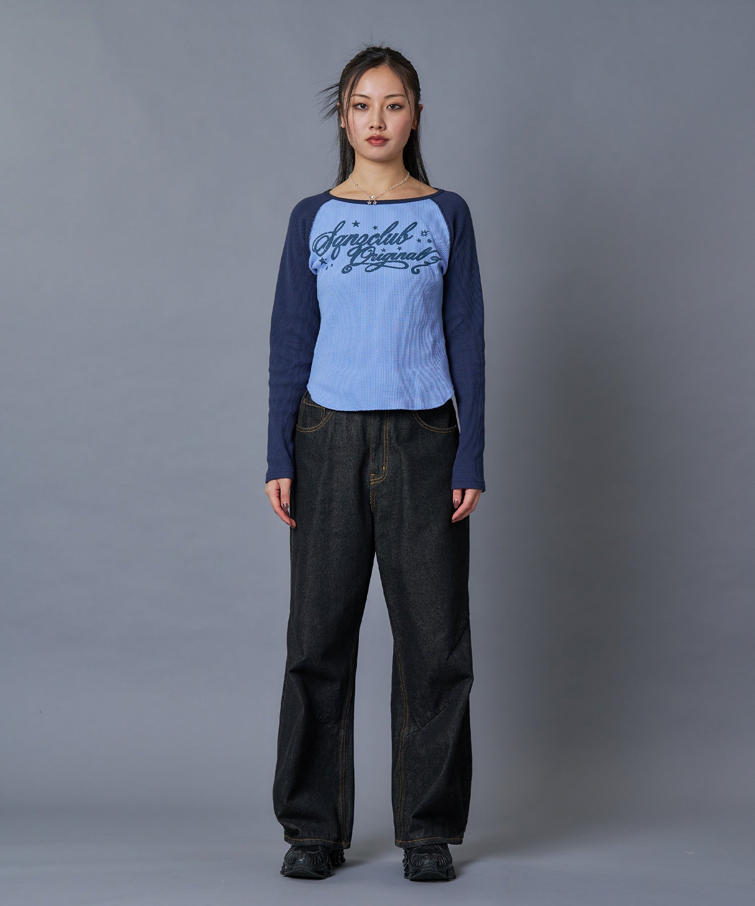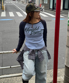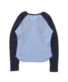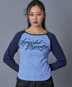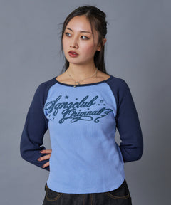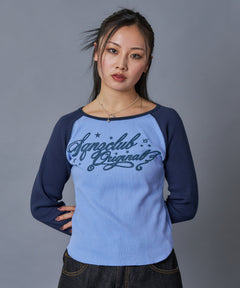 - sqnz angel thermal / ロンT クルーネック ラグラン サーマル ワッフル 長袖 プリント ネイビー