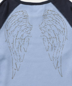 sqnz angel thermal / ロンT クルーネック ラグラン サーマル ワッフル 長袖 プリント ネイビー