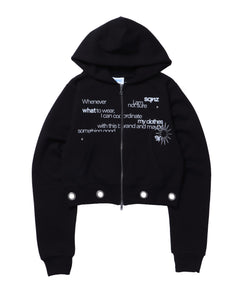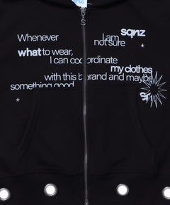 - sqnz eyelet fit zip pk / レディース ジップパーカー フーディ ハトメ スタッズ ダフルジップ 裏起毛≪SET UP着用可能≫ ブラック