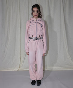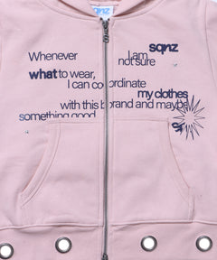 sqnz eyelet fit zip pk / レディース ジップパーカー フーディ ハトメ スタッズ ダフルジップ 裏起毛≪SET UP着用可能≫ ピンク