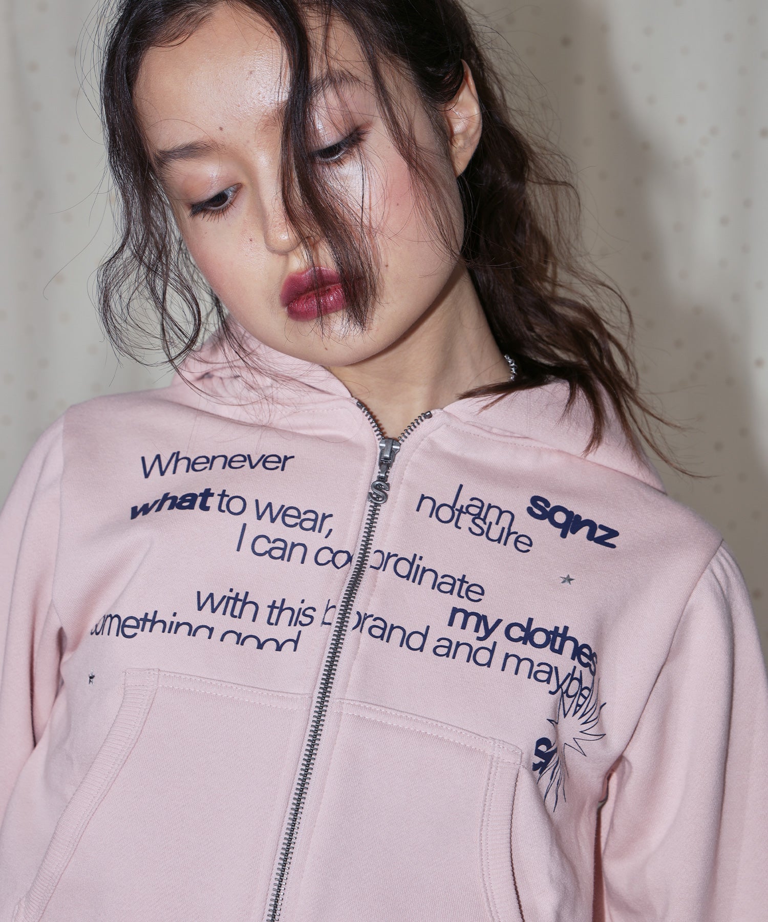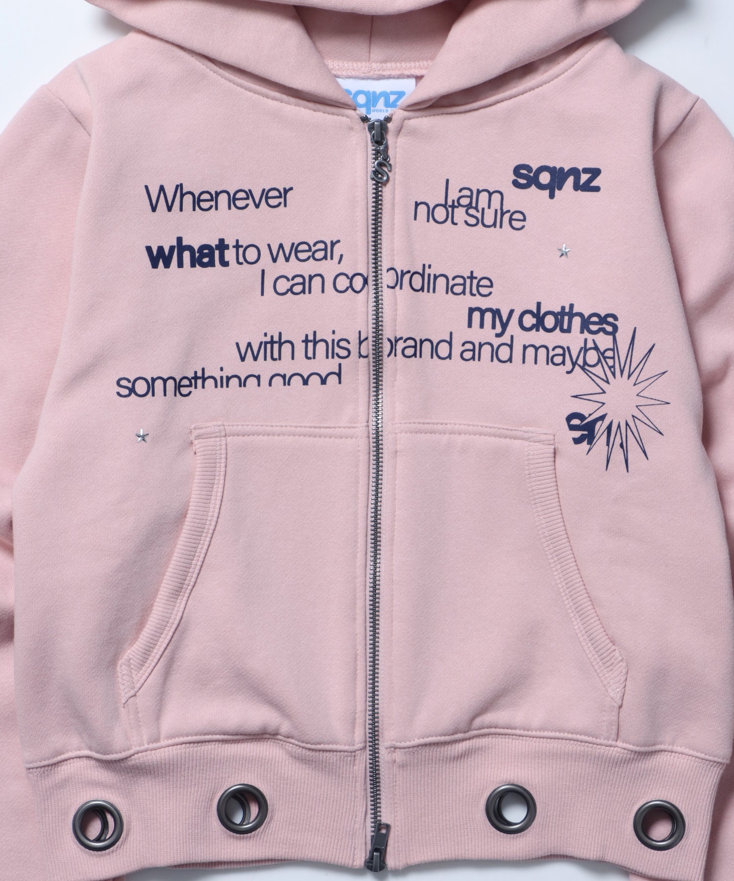 - sqnz eyelet fit zip pk / レディース ジップパーカー フーディ ハトメ スタッズ ダフルジップ 裏起毛≪SET UP着用可能≫ ピンク