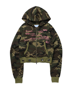 裾のハトメデザインが目を引くレディースジップパーカー。