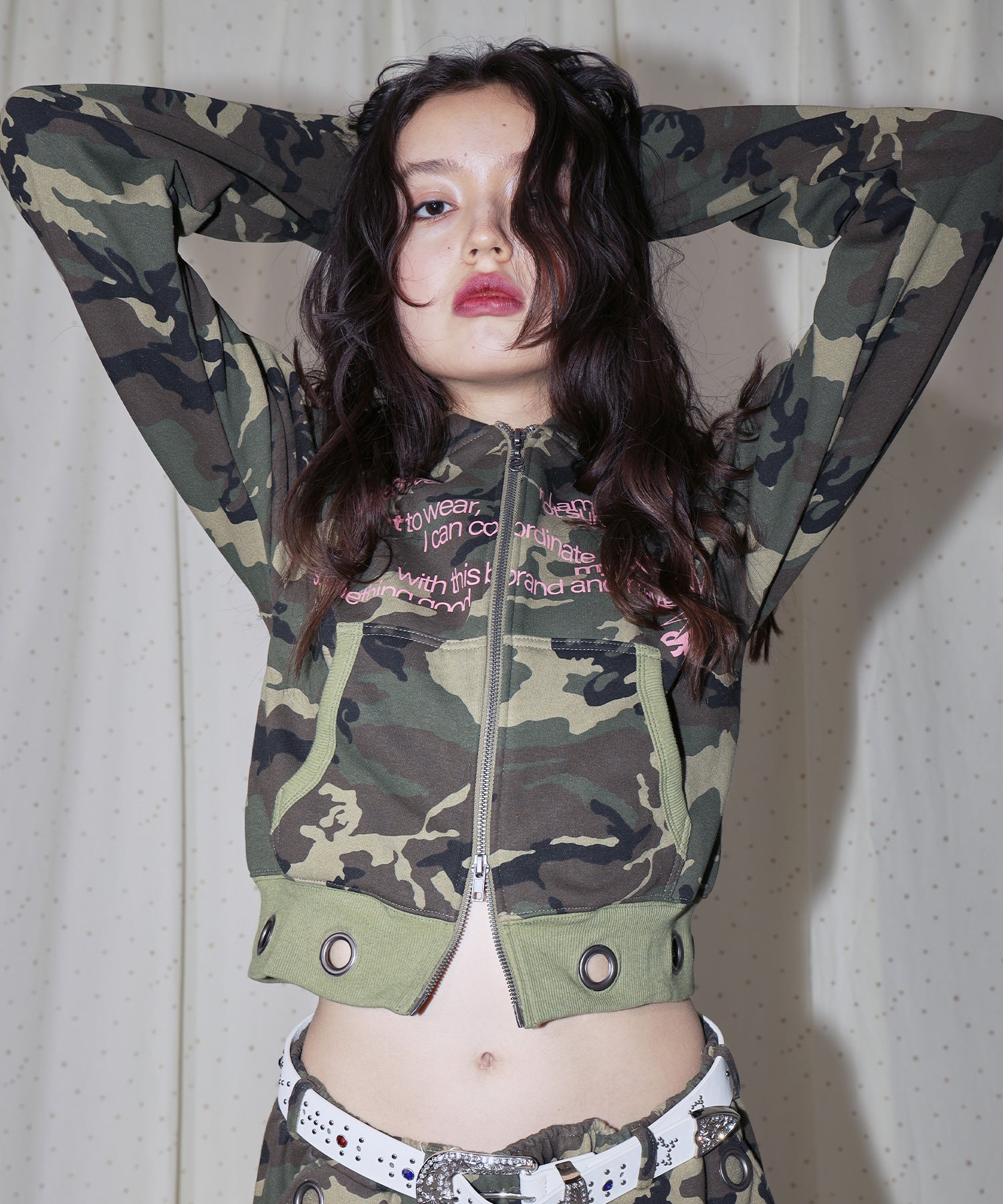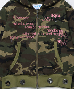 - sqnz eyelet fit zip pk / レディース ジップパーカー フーディ ハトメ スタッズ ダフルジップ 裏起毛 ≪SET UP着用可能≫ 柄80