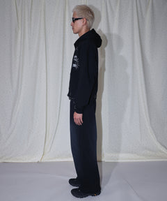 裾のハトメデザインが目を引くユニセックスジップパーカー。