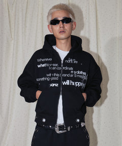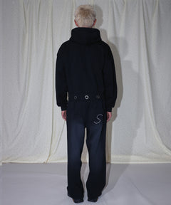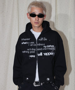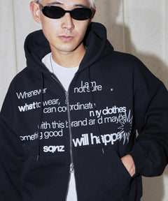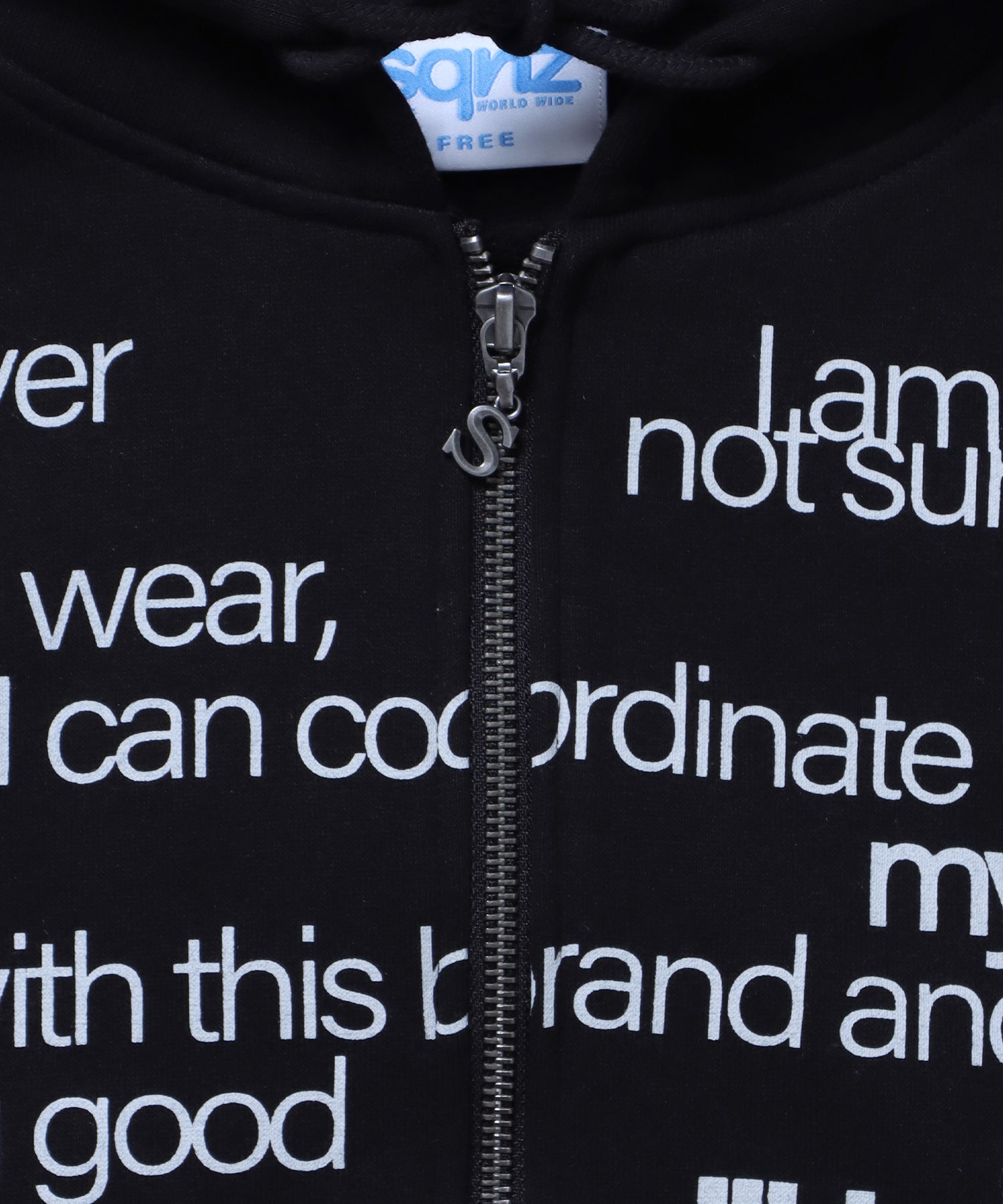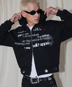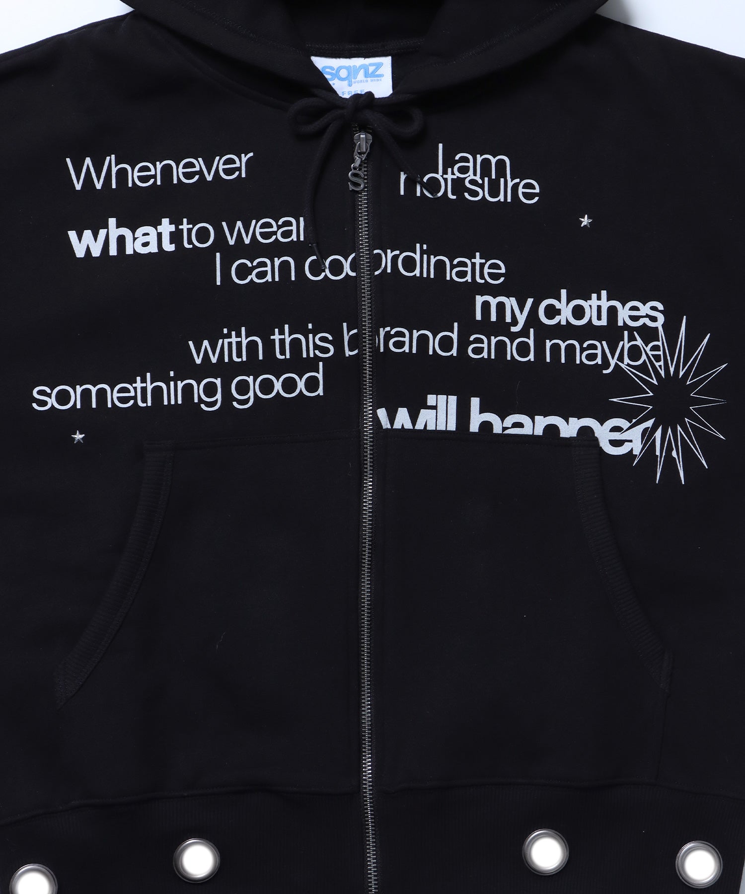 - sqnz eyelet zip pk / ジップパーカー スタッズ フーディ ハトメ 裏起毛≪SET UP着用可能≫ ブラック