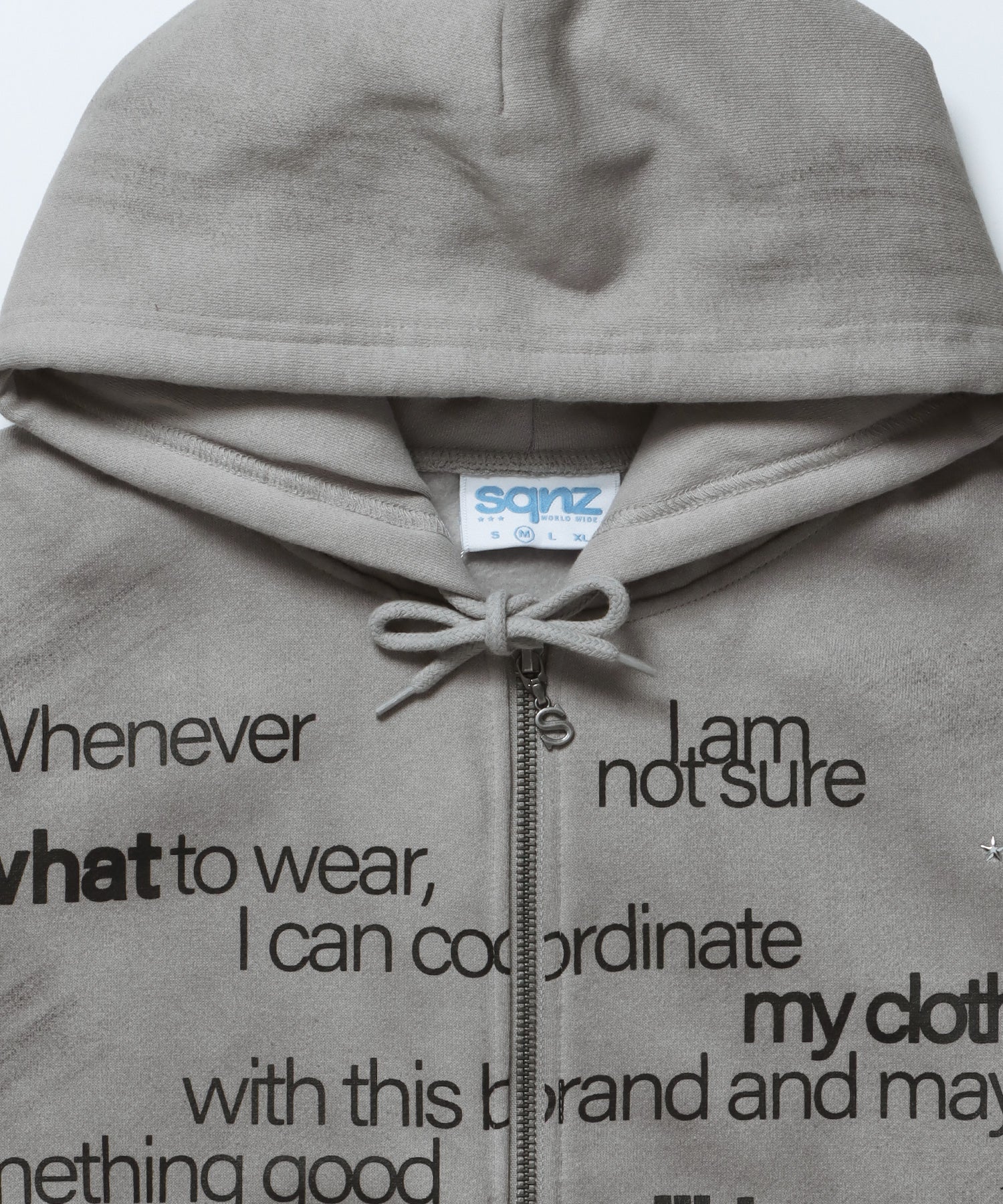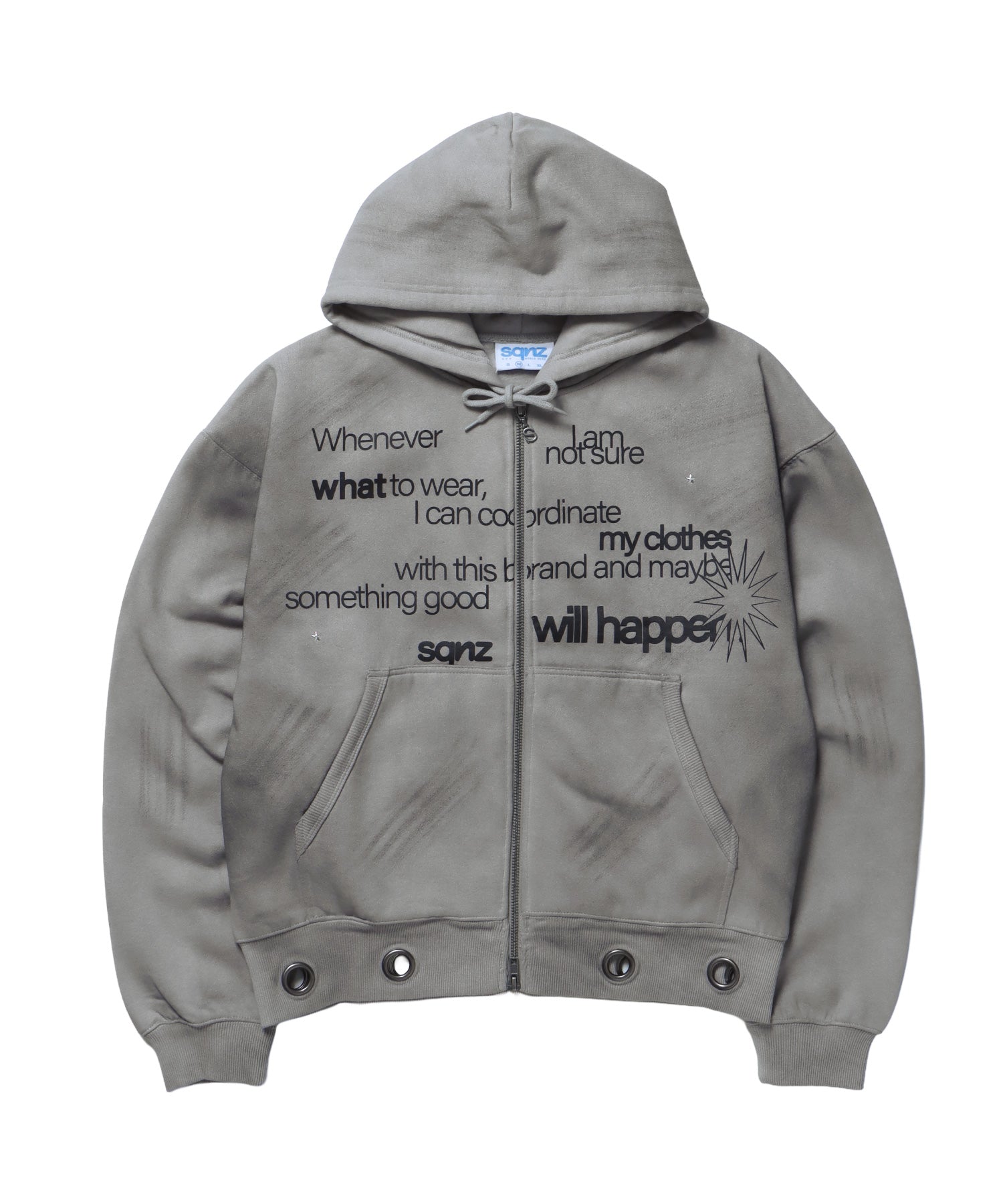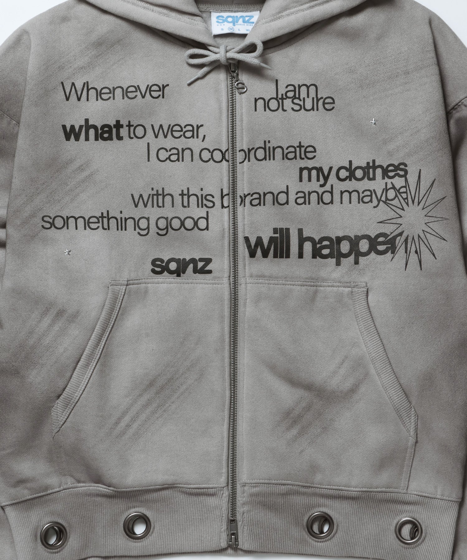 - sqnz eyelet zip pk / ジップパーカー スタッズ フーディ ハトメ 裏起毛≪SET UP着用可能≫ ライトグレー