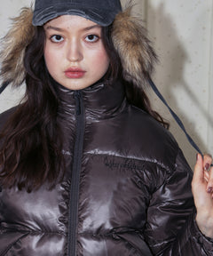 sqnz puffa short pading ladies / レディース パファ ダウン ジャケット 中綿 短丈 ドローコード ブラウン