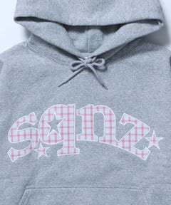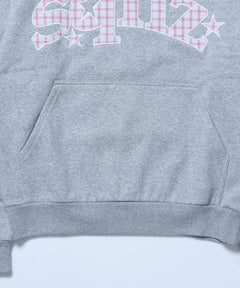 sqnz gingham applique pk / ジップパーカー 裏起毛 フーディ チェック ワッペン 刺繍 グレー