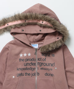 sqnz fur zip pk / レディース ファー ジップパーカー スタッズ 裏起毛 短丈 ダブルジップ ピンク