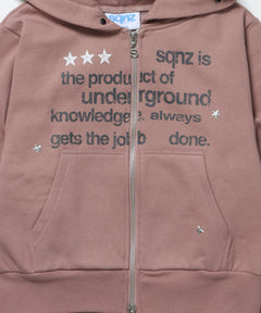 - sqnz fur zip pk / レディース ファー ジップパーカー スタッズ 裏起毛 短丈 ダブルジップ ピンク