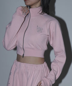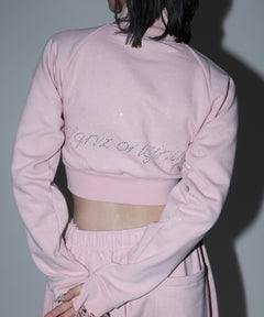 sqnz glitter zip top / グリッターダブルジップ ジップスウェット 裏起毛 ラインストーン 【セットアップ着用可能】 ライトピンク
