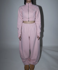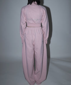 - sqnz glitter zip top / グリッターダブルジップ ジップスウェット 裏起毛 ラインストーン 【セットアップ着用可能】 ライトピンク